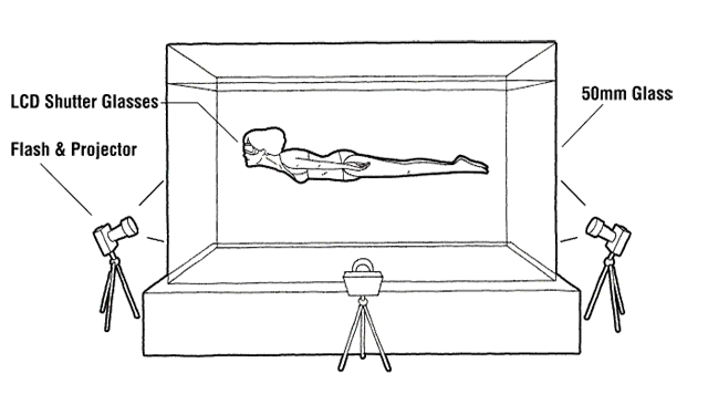 AquaCAVEは、水槽の壁をリアプロジェクションスクリーンとして利用することで、スイマーを取り巻く風景を生成するシステム。バーチャル・リアリティ技術であるCAVEのような、立体映像による没入環境を泳ぎながらにして体験できます。