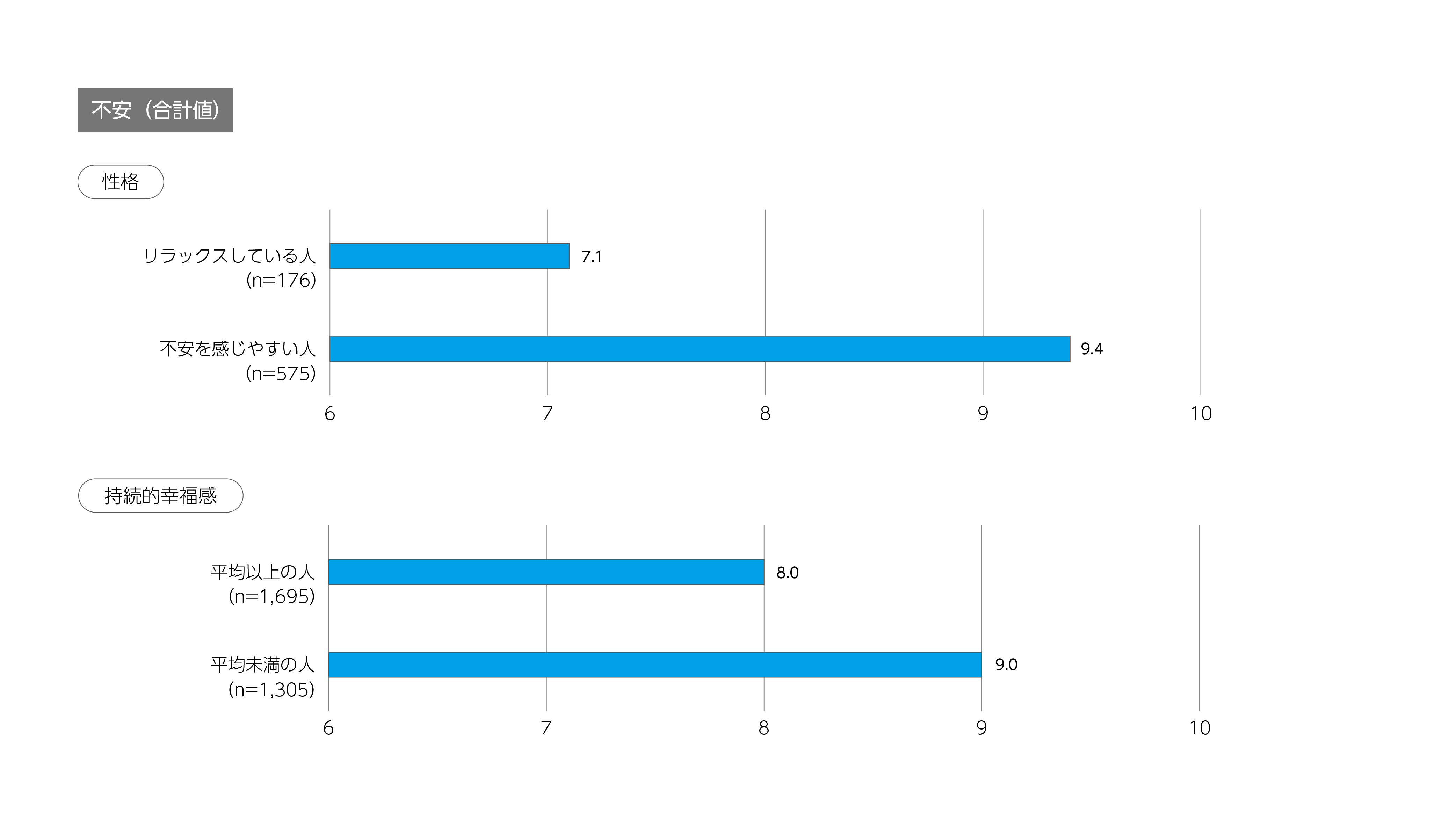 コロナ関連経験がある人※1、普段から不安を感じやすい人、幸福感の低い人は、不安が大きい。