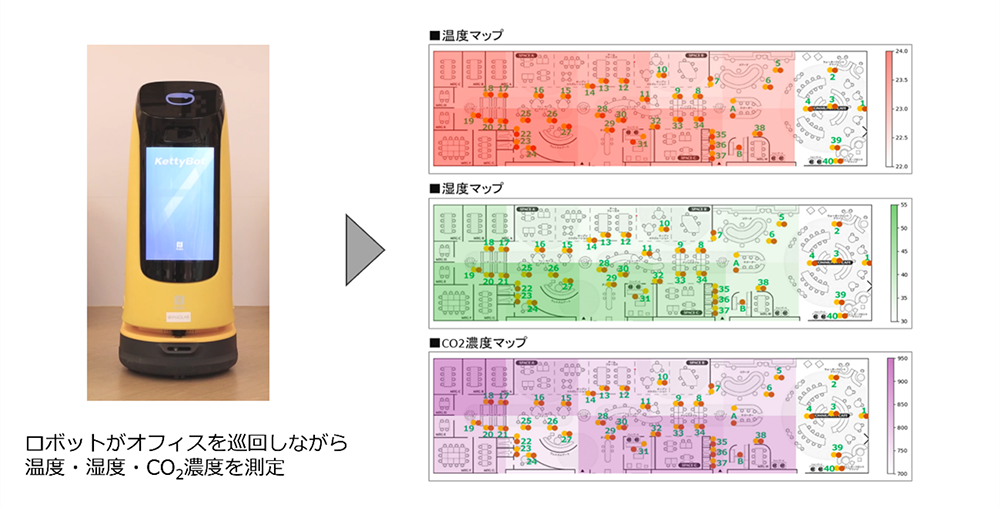 さらに、環境センサーロボットを活用することで、広いエリアの温度などの環境データを簡単に測定できるようになりました。このデータを設備管理者やビル設備を制御しているシステムと連携させることで、空調の調節に活用することができ、電力最適化にもつながります。