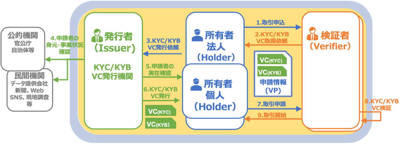 図:「KYC/KYBに基づいたトラストのある取引」を促進する新しい仕組みの概要図