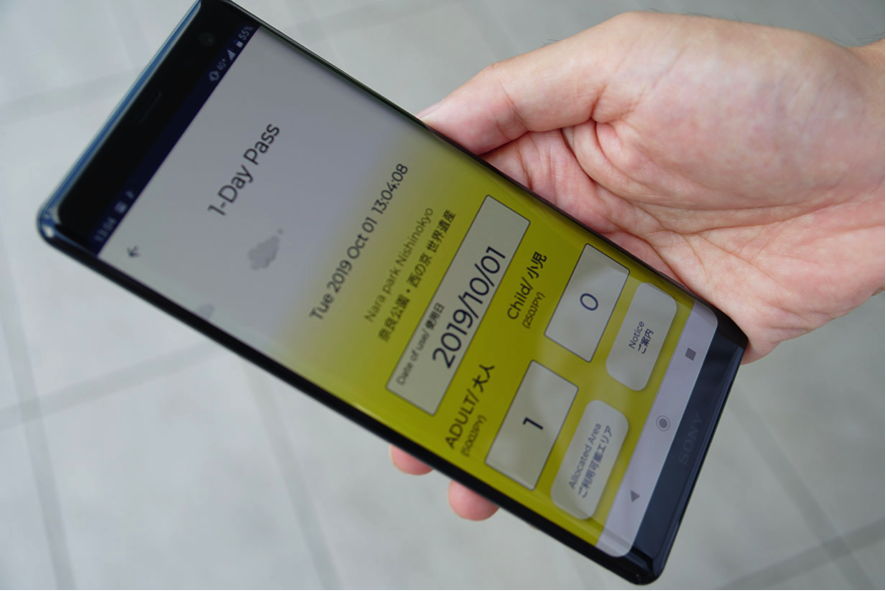 「IMRIDE」の提案したルートに従い、バスチケットの決済を済ませます。今回の実証実験では、奈良交通の高速リムジンバスに1日周遊チケットがセットになったおトクなチケットを購入することができます。奈良までのチケットを購入し、まずは高速リムジンバスに乗り込みます!