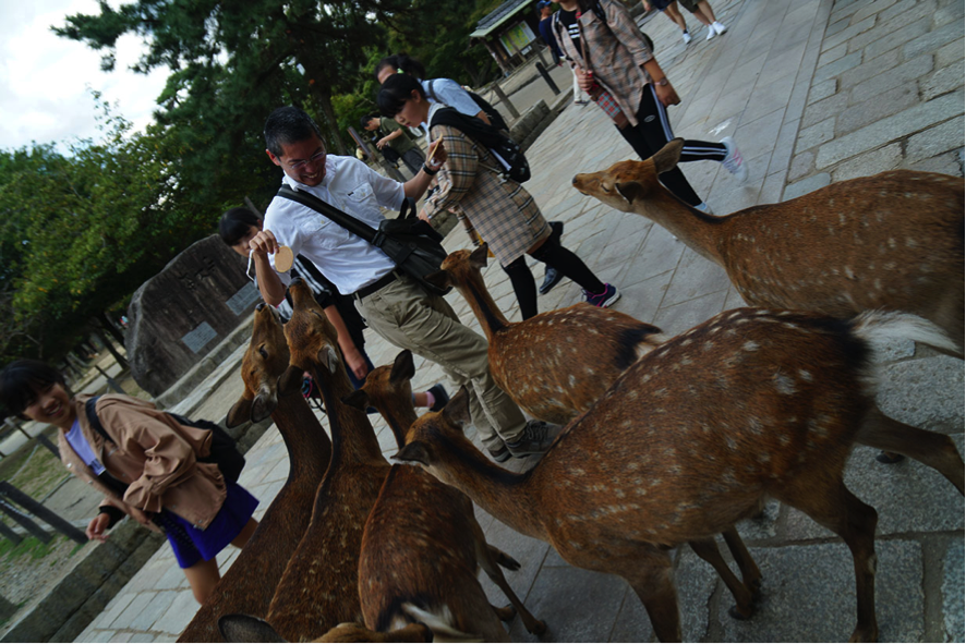 関西空港からワンストップで奈良公園へ到着(これがシンガポールからであれば、なんと飛行機まで含めてワンストップです)!世界遺産の東大寺と、その周辺の奈良公園。たくさんの鹿たちが出迎えてくれます。私たちも鹿せんべいを買って、鹿たちとのふれあいにチャレンジ!