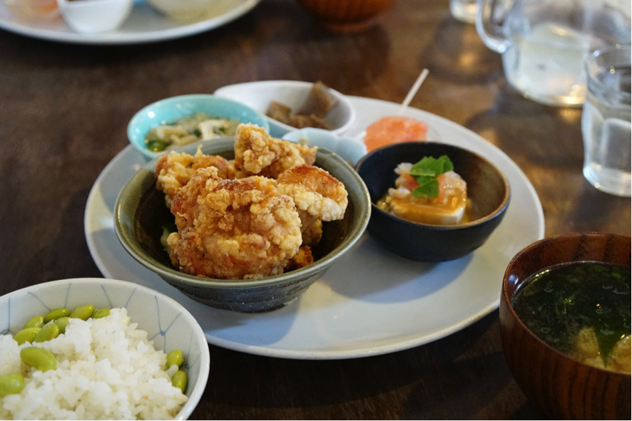 くるり奈良から「ここへ行く!」ボタンを押せば、その写真の場所までルートを引いてくれます。私たちはならまちにあるお店でごはんをいただきました。さすがにSNSに映えるお店だけに、周りの雰囲気に押されながらもお茶を飲みながらくるり奈良を眺めて、次の目的地のステキな風景の場所を探します。