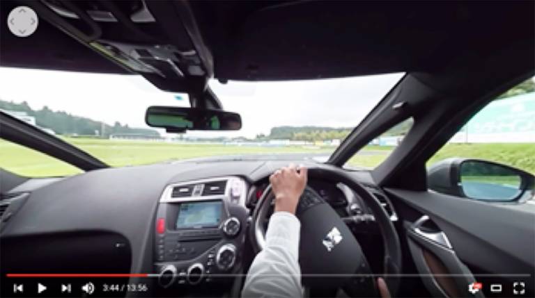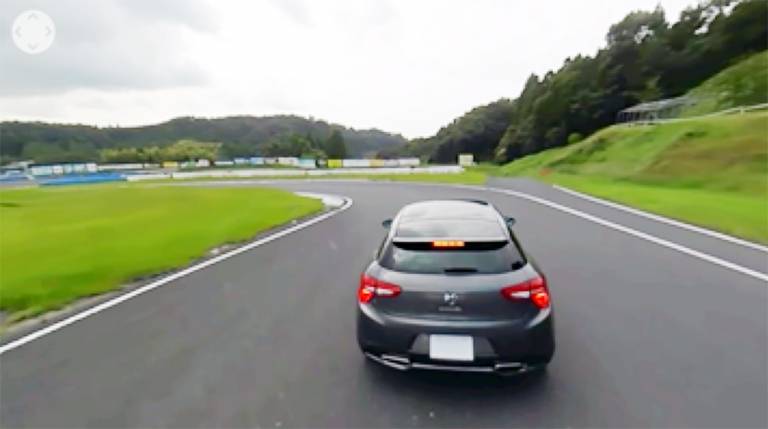 2つ目は、どのようにして三人称視点を撮影するのか。突飛な手段では実証実験で終わってしまうので、社会実装が実現可能な撮影手段を考える必要があります。今回はドローンを使用できるサーキットで撮影をしたためドローンでの空撮も行いましたが、公道でも応用できるように撮影車を後続させて擬似空撮を実施しました。