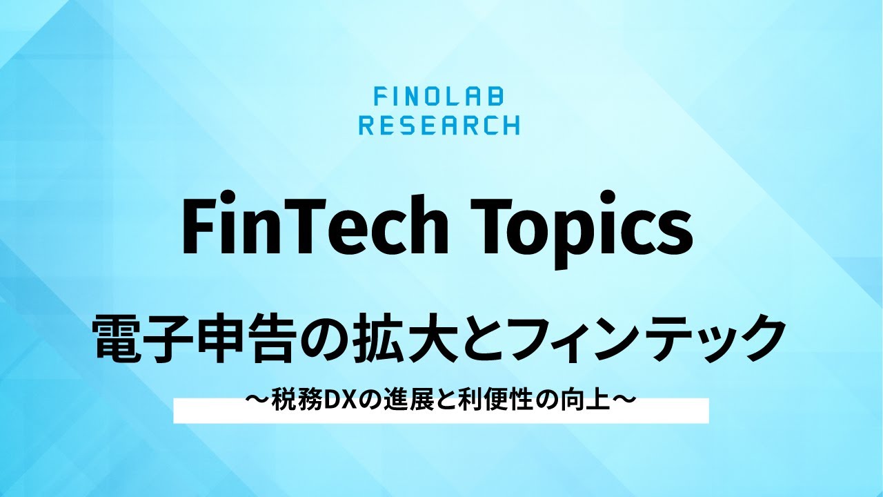 電子申告の拡大とフィンテック ~ 税務DXの進展と利便性の向上 ~ | FinTech Topics #69